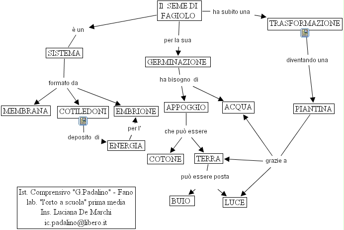 TERRA pu� essere posta LUCE, TERRA pu� essere posta BUIO , TRASFORMAZIONE diventando una PIANTINA, Il SEME DI FAGIOLO per la sua GERMINAZIONE , TERRA grazie a LUCE, Il SEME DI FAGIOLO � un SISTEMA, COTILEDONI deposito di ENERGIA, ENERGIA per l' EMBRIONE, SISTEMA formato da EMBRIONE, SISTEMA formato da COTILEDONI, SISTEMA formato da MEMBRANA, Il SEME DI FAGIOLO ha subito una TRASFORMAZIONE, PIANTINA grazie a LUCE, APPOGGIO che pu� essere TERRA, APPOGGIO che pu� essere COTONE, GERMINAZIONE ha bisogno di ACQUA, GERMINAZIONE ha bisogno di APPOGGIO, ACQUA grazie a LUCE