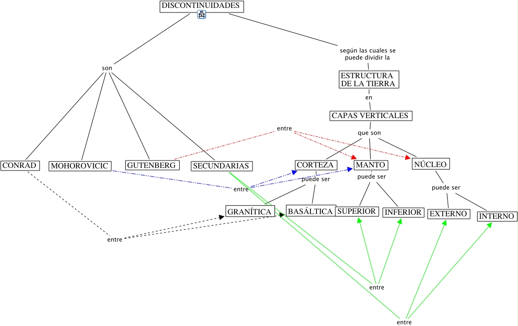 This Concept Map, created with IHMC CmapTools, has information related to: discontinuidades, DISCONTINUIDADES según las cuales se puede dividir la ESTRUCTURA DE LA TIERRA, DISCONTINUIDADES son MOHOROVICIC, CAPAS VERTICALES que son MANTO, DISCONTINUIDADES son CONRAD, DISCONTINUIDADES son SECUNDARIAS, MANTO puede ser INFERIOR, NÚCLEO puede ser INTERNO, MOHOROVICIC entre MANTO, CONRAD entre GRANÍTICA, MANTO puede ser SUPERIOR, CAPAS VERTICALES que son NÚCLEO, CORTEZA puede ser BASÁLTICA, SECUNDARIAS entre INFERIOR, CAPAS VERTICALES que son CORTEZA, MOHOROVICIC entre CORTEZA, GUTENBERG entre MANTO, CONRAD entre BASÁLTICA, NÚCLEO puede ser EXTERNO, DISCONTINUIDADES son GUTENBERG, SECUNDARIAS entre SUPERIOR