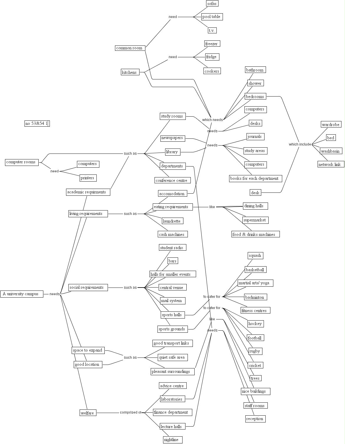 no 53&54 1, sports halls, good location, advice centre, bedrooms, bars, dining halls, t.v., accomodation, bed, finance department, desk, living requirements, conference centre, supermarket, computers, pool table, cookers, football, computer rooms, space to expand, wardrobe, cash machines, study areas, sports grounds, nightline, nice buildings, mail system, washbasin, reception, printers, journals, no 53&54 1, books for each department, social requirements, trees, quiet safe area, common room, fitness centres, central venue, shower, welfare, cricket, desks, basketball, hockey, halls for smaller events, kitchens, pleasant surroundings, staff rooms, laundrette, library, fridge, martial arts yoga, newspapers, computers, food & drinks machines, network link, student radio, bathroom, rugby, laboratories, academic requirments, sofas, squash, freezer, departments, eating requirements, good transport links, study rooms, badminton, computers, a university campus, lecture halls