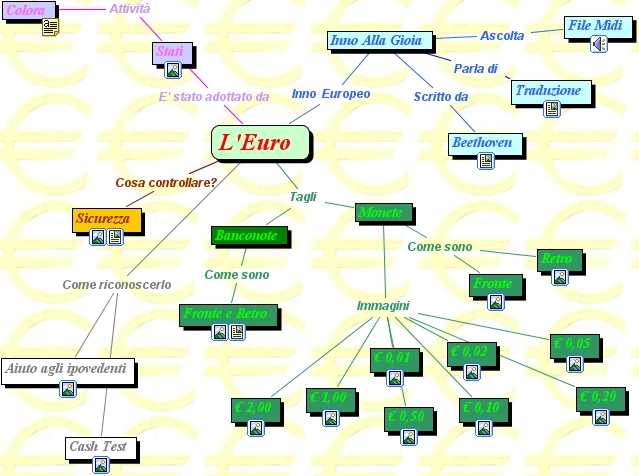 euro, inno alla gioia, beethoven, sicurezza, retro, � 0,05, � 0,10, � 0,50, fronte e retro, traduzione, � 0,01, monete, � 1,00, cash test, � 0,20, � 0,02, l'euro, � 2,00, aiuto agli ipovedenti, file midi, stati, fronte, colora, banconote