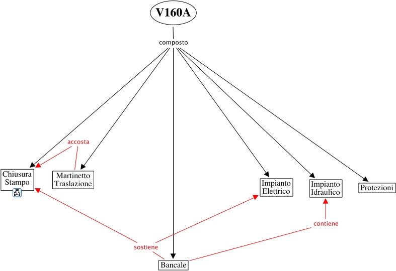 This Concept Map, created with IHMC CmapTools, has information related to: PrimoLivello_01, Bancale sostiene Impianto Elettrico, V160A composto Impianto Idraulico, V160A composto Bancale, Martinetto Traslazione accosta Chiusura Stampo, V160A composto Chiusura Stampo, Bancale sostiene Chiusura Stampo, V160A composto Impianto Elettrico, V160A composto Protezioni, V160A composto Martinetto Traslazione, Bancale contiene Impianto Idraulico