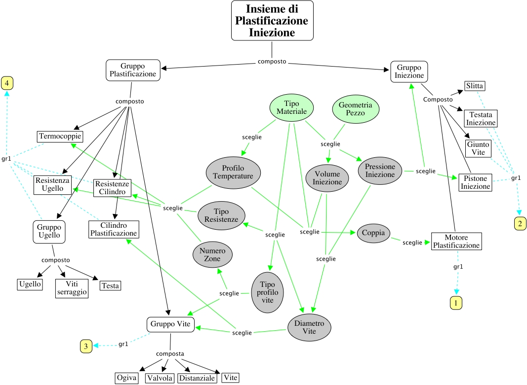 This Concept Map, created with IHMC CmapTools, has information related to: Insieme_di_plastificazione_iniezione_03, Profilo Temperature sceglie Resistenze Cilindro, Testata Iniezione gr1 2, Volume Iniezione sceglie Coppia, Tipo Materiale sceglie Profilo Temperature, Tipo Materiale sceglie Tipo profilo vite, Coppia sceglie Motore Plastificazione, Pistone Iniezione Composto Slitta, Resistenze Cilindro gr1 4, Tipo Resistenze sceglie Resistenza Ugello, Gruppo Ugello composto Testa, Motore Plastificazione Composto Testata Iniezione, Slitta gr1 2, Tipo Materiale sceglie Pressione Iniezione, Resistenza Ugello gr1 4, Pressione Iniezione sceglie Pistone Iniezione, Gruppo Plastificazione composto Termocoppie, Motore Plastificazione Composto Slitta, Giunto Vite gr1 2, Diametro Vite sceglie Cilindro Plastificazione, Motore Plastificazione gr1 1