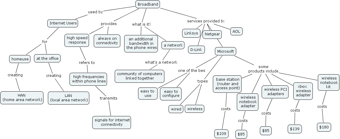 technology report cmap, $85, $180, lan (local area network), wireless pci adapters, xbox wireless adapter, a network, wireless notebook adapter, linksys, easy to configure, always on connectivity, wired, an additional bandwidth in the phone wires, high speed response, han (home area network), easy to use, $109, netgear, wireless, d-link, homeuse, wireless notebook kit, aol, internet users, signals for internet connectivity, community of computers linked together, high frequencies within phone lines, $85, at the office, broadband, base station (router and access point), $139, microsoft