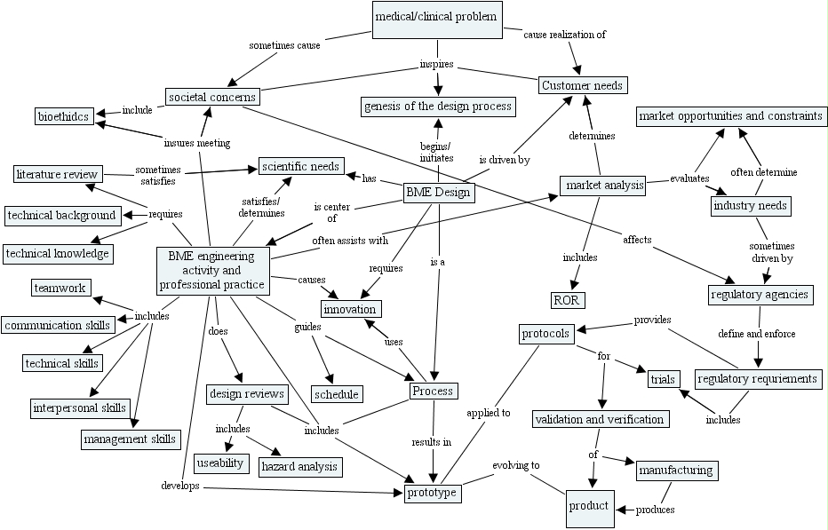 rice t2, process, technical background, management skills, communication skills, trials, genesis of the design process, technical skills, teamwork, design reviews, prototype, useability, bme design, medical clinical problem , scientific needs, manufacturing, industry needs, societal concerns, market analysis, protocols, innovation, regulatory requriements, bme engineering activity and professional practice, literature review, product , schedule, ror, hazard analysis, bioethidcs, customer needs, market opportunities and constraints, validation and verification, regulatory agencies, technical knowledge, interpersonal skills