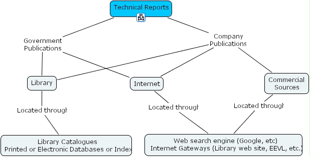 locating technical reports, library catalogues printed or electronic databases or index, commercial sources, web search engine (google, etc) internet gateways (library web site, eevl, etc.), internet, library, technical reports