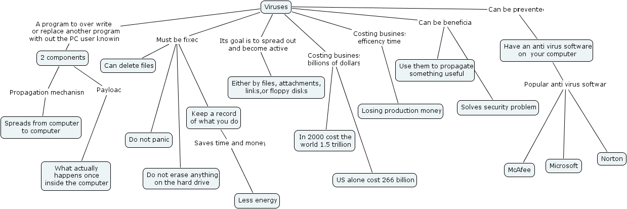issues, mcafee, keep a record of what you do, can delete files, losing production money, use them to propagate something useful, norton, either by files, attachments, links,or floppy disks, what actually happens once inside the computer, less energy, do not erase anything on the hard drive, in 2000 cost the world 1.5 trillion, spreads from computer to computer, do not panic, microsoft, 2 components, viruses, us alone cost 266 billion, solves security problem, have an anti virus software on your computer