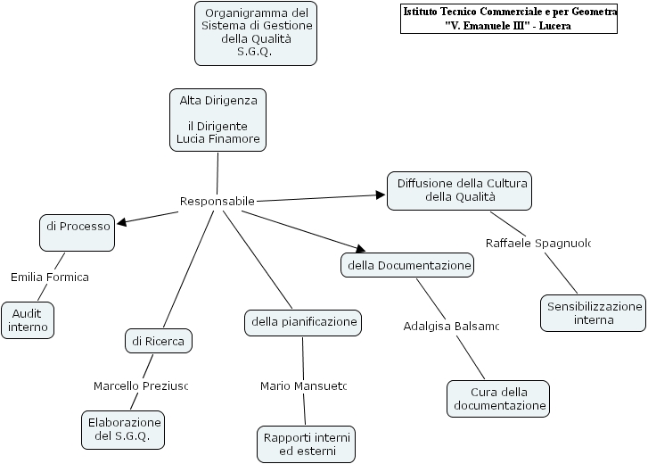 organigramma del sgq, di ricerca, audit interno, di processo , organigramma del sistema di gestione della qualit� s.g.q., rapporti interni ed esterni, elaborazione del s.g.q., della pianificazione, istituto tecnico commerciale e per geometra v. emanuele iii - lucera, alta dirigenza il dirigente lucia finamore, della documentazione, sensibilizzazione interna, cura della documentazione, diffusione della cultura della qualit�