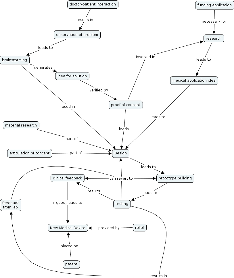 cmap 19, research, proof of concept, clinical feedback, doctor-patient interaction, relief, idea for solution, design, articulation of concept, observation of problem, testing, brainstorming, new medical device, funding application, prototype building, feedback from lab, patent, medical application idea, material research