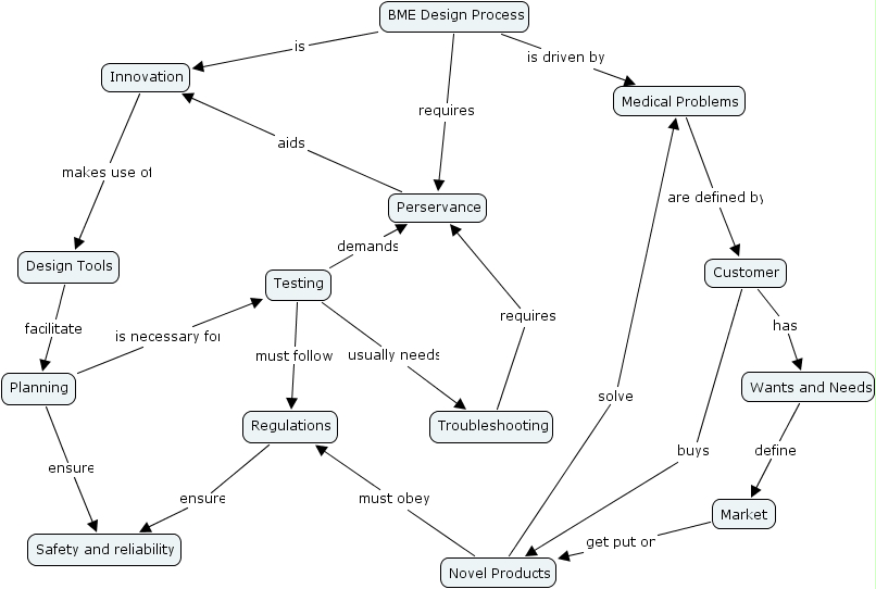 cmap 69, troubleshooting, market, planning, novel products, testing, design tools, innovation, medical problems, safety and reliability, regulations, perservance, wants and needs, customer, bme design process