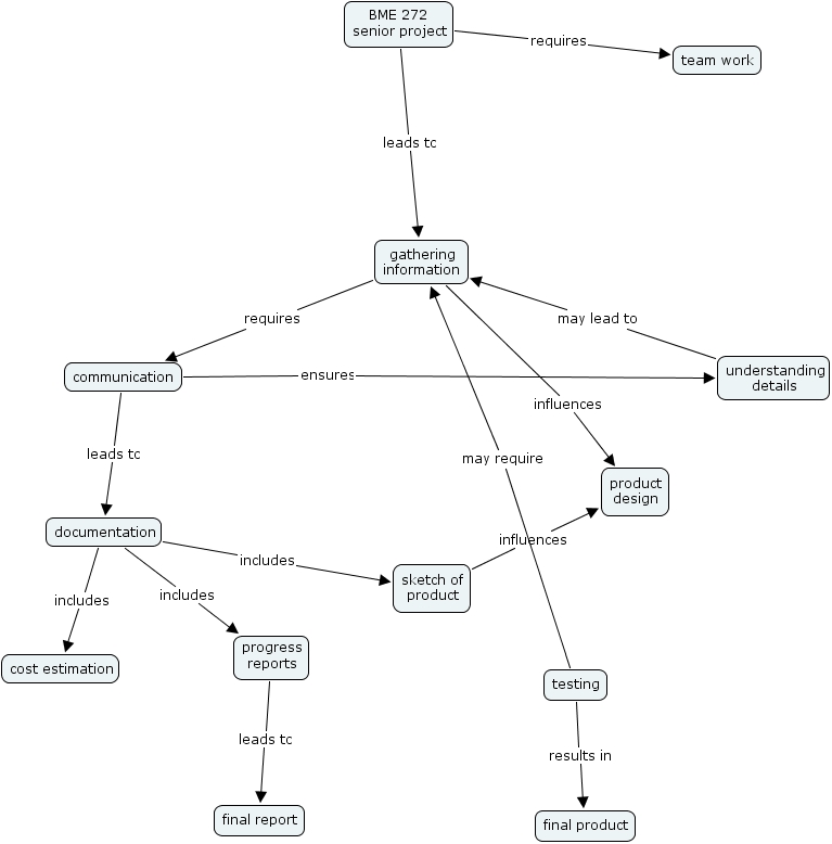 cmap 89, sketch of product, bme 272 senior project, progress reports, cost estimation, final report, team work, documentation, gathering information, final product, understanding details, product design, testing, communication