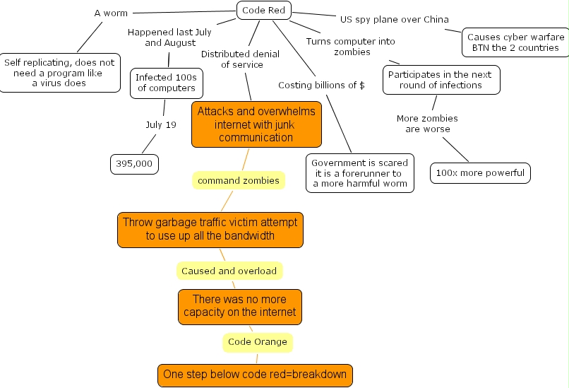 stringmapcase16, government is scared it is a forerunner to a more harmful worm, one step below code red=breakdown, participates in the next round of infections, attacks and overwhelms internet with junk communication, 100x more powerful, causes cyber warfare btn the 2 countries, there was no more capacity on the internet, infected 100s of computers, code red, self replicating, does not need a program like a virus does, 395,000, throw garbage traffic victim attempt to use up all the bandwidth
