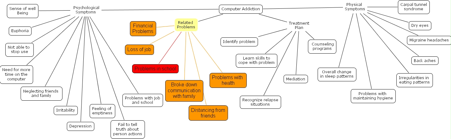 outgoingsolution14, migraine headaches, computer addiction, financial problems, not able to stop use, depression, back aches, problems in school, counseling programs, distancing from friends, need for more time on the computer, irritability, recognize relapse situations, problems with health, learn skills to cope with problem, dry eyes, feeling of emptiness, carpal tunnel syndrome, broke down communication with family, sense of well being, neglecting friends and family, problems with maintaining hygiene, fail to tell truth about person actions, euphoria, identify problem, mediation, overall change in sleep patterns, loss of job, problems with job and school, irregularities in eating patterns