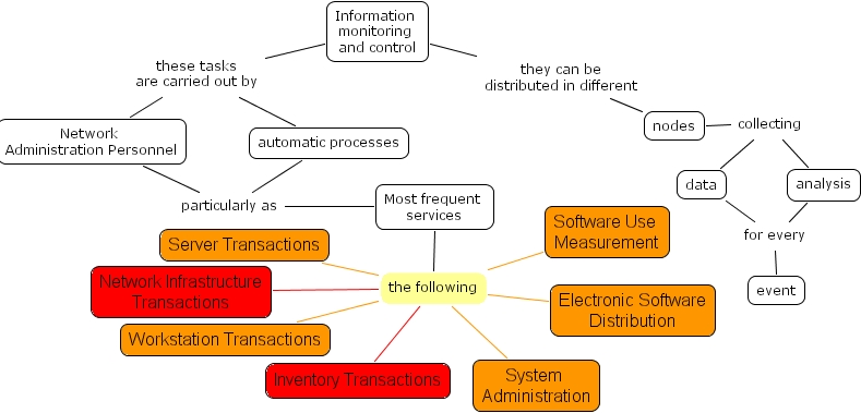 outgoingsolution1, event, server transactions, most frequent services, data, analysis, workstation transactions, electronic software distribution, system administration, software use measurement, nodes, network administration personnel, inventory transactions, network infrastructure transactions, information monitoring and control, automatic processes