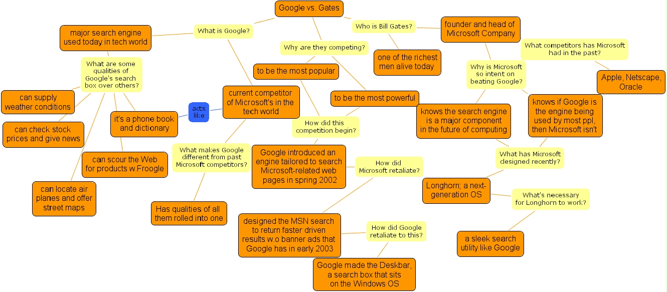 treesolution10, to be the most popular, can locate air planes and offer street maps, designed the msn search to return faster driven results w.o banner ads that google has in early 2003, google introduced an engine tailored to search microsoft-related web pages in spring 2002, can check stock prices and give news, longhorn a next- generation os, a sleek search utility like google, it's a phone book and dictionary, founder and head of microsoft company, major search engine used today in tech world, google vs. gates, can supply weather conditions, google made the deskbar, a search box that sits on the windows os, to be the most powerful, can scour the web for products w.froogle, apple, netscape, oracle, one of the richest men alive today , current competitor of microsoft's in the tech world, has qualities of all them rolled into one, knows if google is the engine being used by most ppl, then microsoft isn't , knows the search engine is a major component in the future of computing