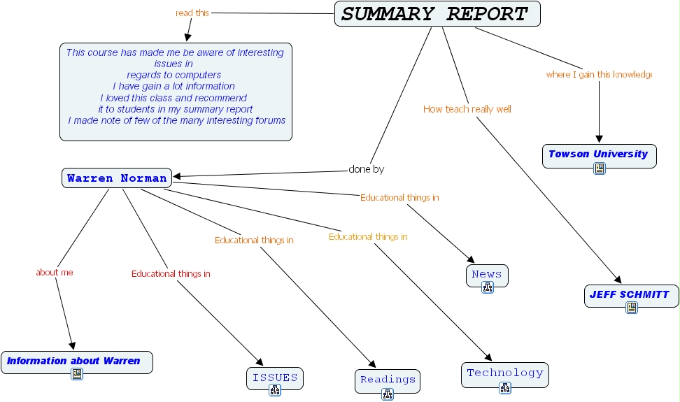 warren norman summary, this course has made me be aware of interesting issues in regards to computers i have gain a lot information i loved this class and recommend it to students in my summary report i made note of few of the many interesting forums , jeff schmitt, information about warren, readings, summary report, news, towson university, warren norman, issues, technology