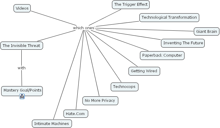 videos cmap, the trigger effect, technological transformation , getting wired , intimate machines , inventing the future, hate.com , videos, no more privacy , giant brain, mastery goal points, technocops , paperback computer , the invisible threat