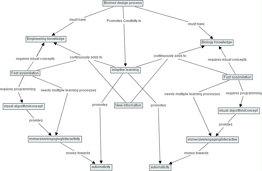 brock t1, biomed design process, biology knowledge, immersive engaging interactive, fast assimilation, visual algorithm concept, fast assimilation, visual algorithm concept, new information, adaptive learning, immersive engaging interactivity, automaticity, engineering knowledge, automaticity