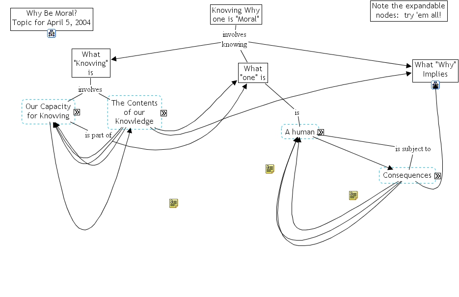why be moral 040405 edited, why be moral? topic for april 5, 2004, the contents of our knowledge, alive, our capacity for knowing, science, a human, esthetics, emotion, good, what why implies, conscious, a human, sets of rules, the word moral, driven or determined, practical duty, embeded in the physical universe, consequences, the contents of our knowledge, definitions, an animal, what one is, different modalities, religious duty, conditions, what knowing is, embeded in society, rational, our capacity for knowing, intuition, faith, knowing why one is moral , consequences, power to choose, bad, note the expandable nodes try 'em all!