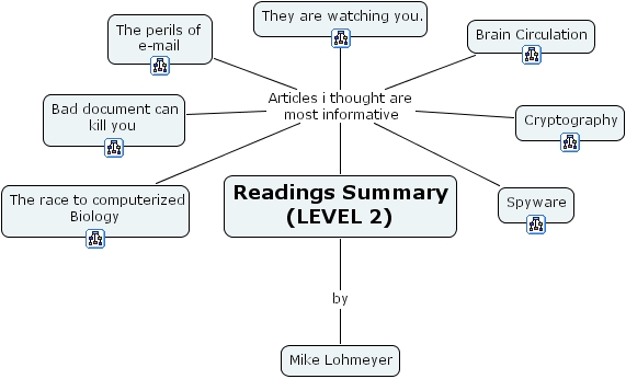 readings summary(level 2), they are watching you., the race to computerized biology, readings summary (level 2), spyware, mike lohmeyer, cryptography, the perils of e-mail, bad document can kill you, brain circulation
