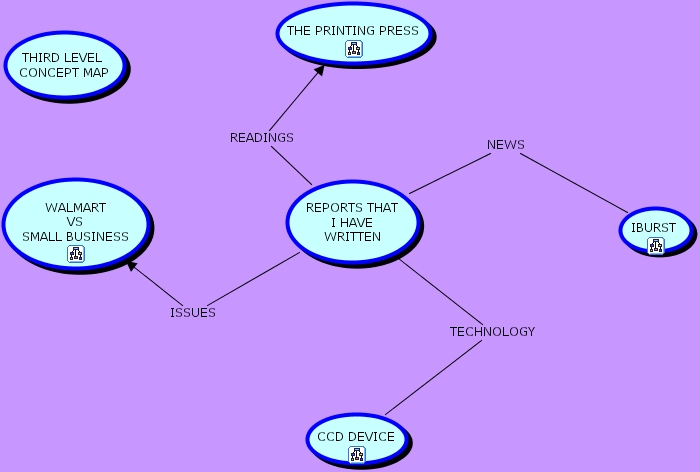 reports that i have written, the printing press, walmart vs small business, ccd device, iburst , reports that i have written, third level concept map