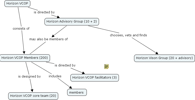 horizon vcop, horizon advisory group (10 2), members , horizon vcop members (200), horizon vcop core team (20), horizon vcop facilitators (3), horizon vison group (20 advisory), horizon vcop