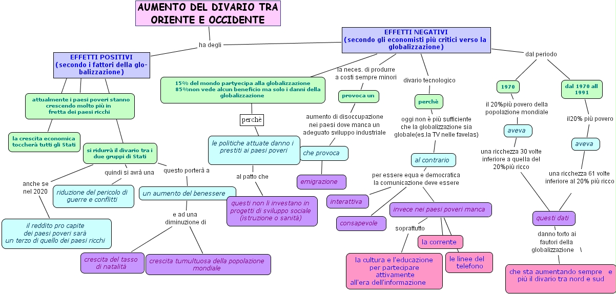 aumento del divario tra oriente e occidente, il reddito pro capite dei paesi poveri sar� un terzo di quello dei paesi ricchi, che provoca , crescita del tasso di natalit�, effetti negativi (secondo gli economisti pi� critici verso la globalizzazione), la crescita economica toccher� tutti gli stati, invece nei paesi poveri manca, emigrazione , effetti positivi (secondo i fattori della glo- balizzazione), provoca un, un aumento del benessere , aveva, questi non li investano in progetti di sviluppo sociale (istruzione o sanit�), riduzione del pericolo di guerre e conflitti, crescita tumultuosa della popolazione mondiale, al contrario, ????, perch�, dal 1970 all 1991, le politiche attuate danno i prestiti ai paesi poveri , 15% del mondo partyecipa alla globalizzazione 85%non vede alcun beneficio ma solo i danni della globalizzazione, 1970, attualmente i paesi poveri stanno crescendo molto pi� in fretta dei paesi ricchi, aumento del divario tra oriente e occidente, la corrente , le linee del telefono, consapevole , interattiva, che sta aumentando sempre e pi� il divario tra nord e sud , questi dati, perch�, aveva, si ridurr� il divario tra i due gruppi di stati, la cultura e l'educazione per partecipare attivamente all'era dell'informazione