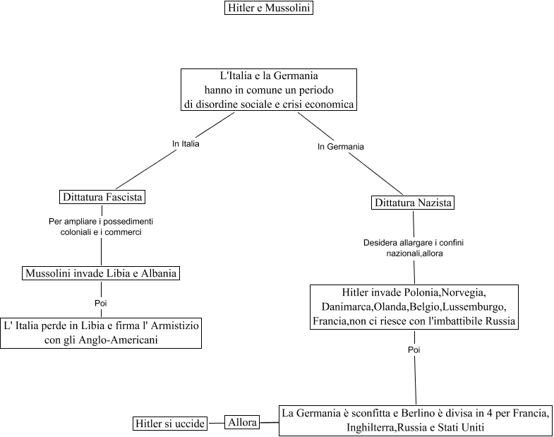 Questa Cmap, creata con IHMC CmapTools, contiene informazioni relative a: hitler e mussolini (michele), La Germania è sconfitta e Berlino è divisa in 4 per Francia, Inghilterra,Russia e Stati Uniti ???? Allora, Mussolini invade Libia e Albania Poi L' Italia perde in Libia e firma l' Armistizio con gli Anglo-Americani, La Germania è sconfitta e Berlino è divisa in 4 per Francia, Inghilterra,Russia e Stati Uniti ???? Hitler si uccide, Dittatura Fascista Per ampliare i possedimenti coloniali e i commerci Mussolini invade Libia e Albania, L'Italia e la Germania hanno in comune un periodo di disordine sociale e crisi economica In Italia Dittatura Fascista, Hitler invade Polonia,Norvegia, Danimarca,Olanda,Belgio,Lussemburgo, Francia,non ci riesce con l'imbattibile Russia Poi La Germania è sconfitta e Berlino è divisa in 4 per Francia, Inghilterra,Russia e Stati Uniti, L'Italia e la Germania hanno in comune un periodo di disordine sociale e crisi economica In Germania Dittatura Nazista, Dittatura Nazista Desidera allargare i confini nazionali,allora Hitler invade Polonia,Norvegia, Danimarca,Olanda,Belgio,Lussemburgo, Francia,non ci riesce con l'imbattibile Russia