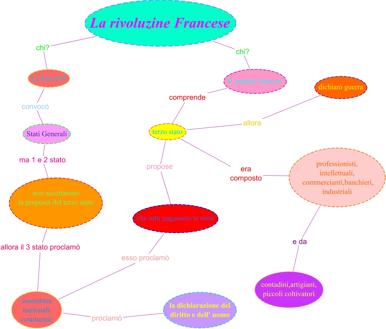 Questa Mappa Concettuale ha informazioni correlate a: rivoluzione francese Gessica C, Il popolo francese comprende terzo stato, La rivoluzine Francese chi? Il popolo francese, terzo stato allora dichiarò guerra, professionisti, intellettuali, commercianti,banchieri, industriali e da contadini,artigiani, piccoli coltivatori, terzo stato propose che tutti pagassero le tasse, terzo stato era composto professionisti, intellettuali, commercianti,banchieri, industriali, La rivoluzine Francese chi? LUIGI XVI, Stati Generali ma 1 e 2 stato non accettarono la proposta del terzo stato, assemblea nazionale costituente proclamò la dichiarazione del diritto e dell' uomo, non accettarono la proposta del terzo stato allora il 3 stato proclamò assemblea nazionale costituente, LUIGI XVI convocò Stati Generali, che tutti pagassero le tasse esso proclamò assemblea nazionale costituente