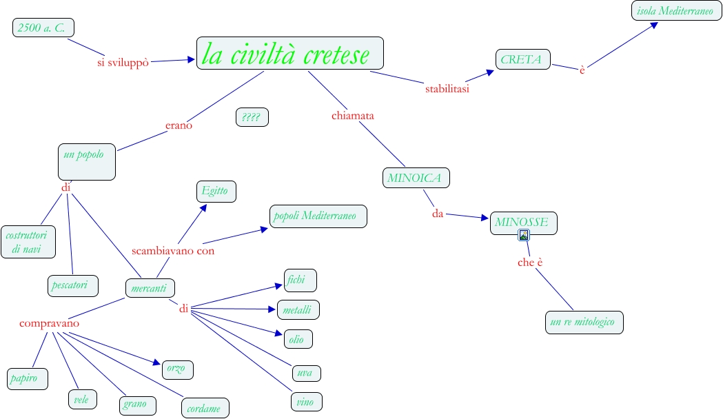 Questa Cmap, creata con IHMC CmapTools, contiene informazioni relative a: i cretesi, la civiltà cretese stabilitasi CRETA, mercanti compravano papiro, mercanti compravano orzo, un popolo di pescatori, mercanti compravano cordame, un popolo di mercanti, 2500 a. C. si sviluppò la civiltà cretese, mercanti compravano vele, mercanti di metalli, mercanti di olio, un popolo di costruttori di navi, mercanti scambiavano con Egitto, mercanti di fichi, MINOICA da MINOSSE, CRETA è isola Mediterraneo, mercanti scambiavano con popoli Mediterraneo, la civiltà cretese erano un popolo, MINOSSE che è un re mitologico, mercanti compravano grano, mercanti di vino