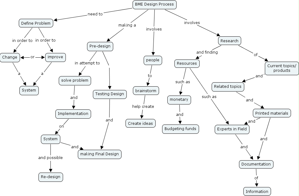 95, implementation, solve problem, related topics, improve, information, system, documentation, making final design, research, people, budgeting funds, pre-design, re-design, bme design process, current topics products, testing design, define problem, experts in field, brainstorm, create ideas, monetary, resources, printed materials, change, system