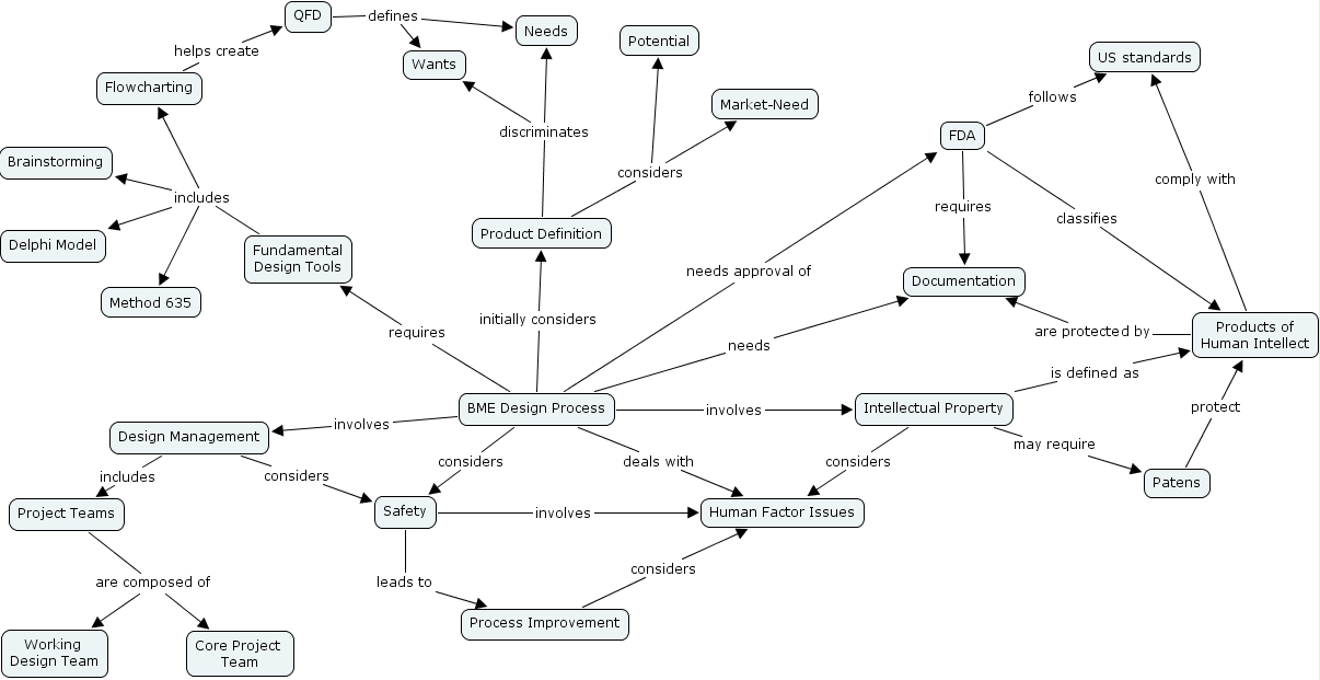 cmap 71, delphi model, product definition, products of human intellect, market-need, documentation, fundamental design tools, us standards, wants, brainstorming, design management, project teams, flowcharting, process improvement, patens, safety, core project team, working design team, potential, human factor issues, method 635, bme design process, needs, qfd, fda, intellectual property