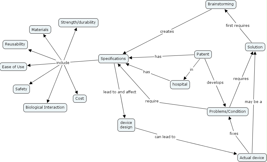 cmap 25, patent, device design, cost, specifications, brainstorming, strength durability, biological interaction, hospital, solution, materials, actual device, problems condition, reusability, safety, ease of use