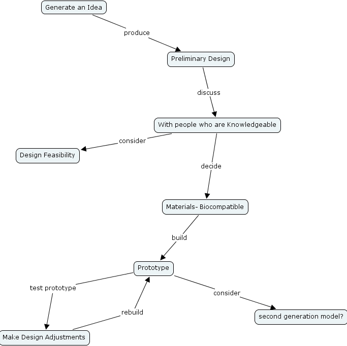 cmap 33, with people who are knowledgeable, design feasibility, prototype, preliminary design, second generation model?, materials- biocompatible, generate an idea, make design adjustments
