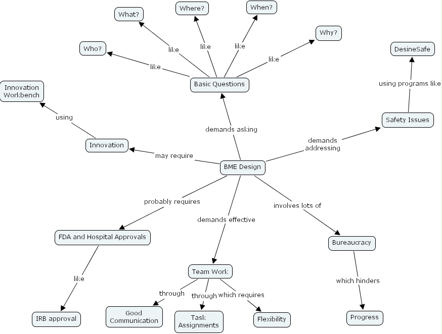 cmap 36, bme design, innovation workbench, innovation, progress, team work, task assignments, where?, who?, irb approval, fda and hospital approvals, flexibility, desinesafe, why?, basic questions, good communication, when?, bureaucracy, safety issues, what?