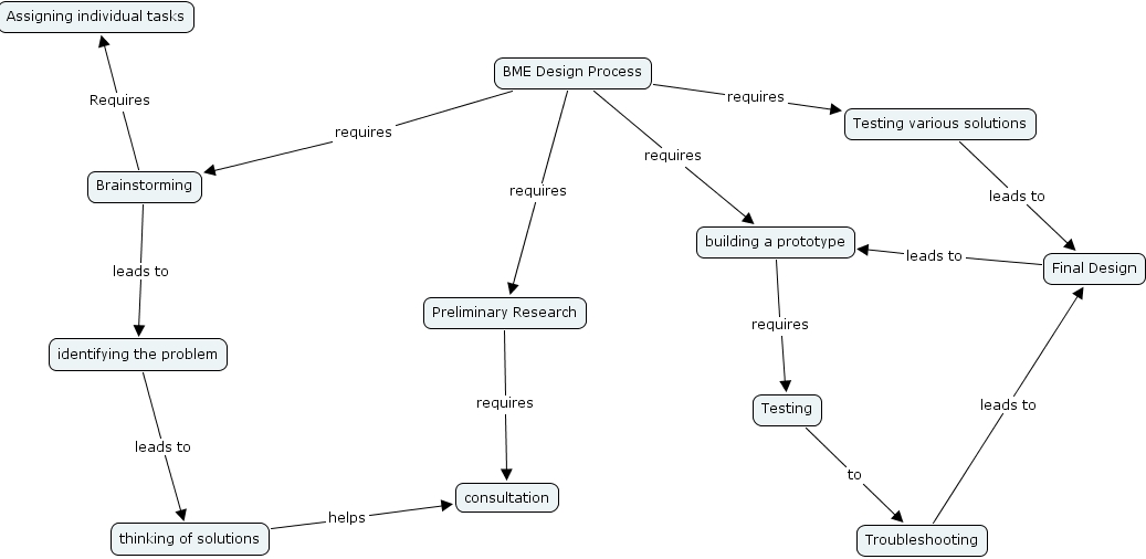 cmap 42, bme design process, consultation, assigning individual tasks, identifying the problem, testing various solutions, testing, troubleshooting, preliminary research, thinking of solutions, brainstorming, final design, building a prototype