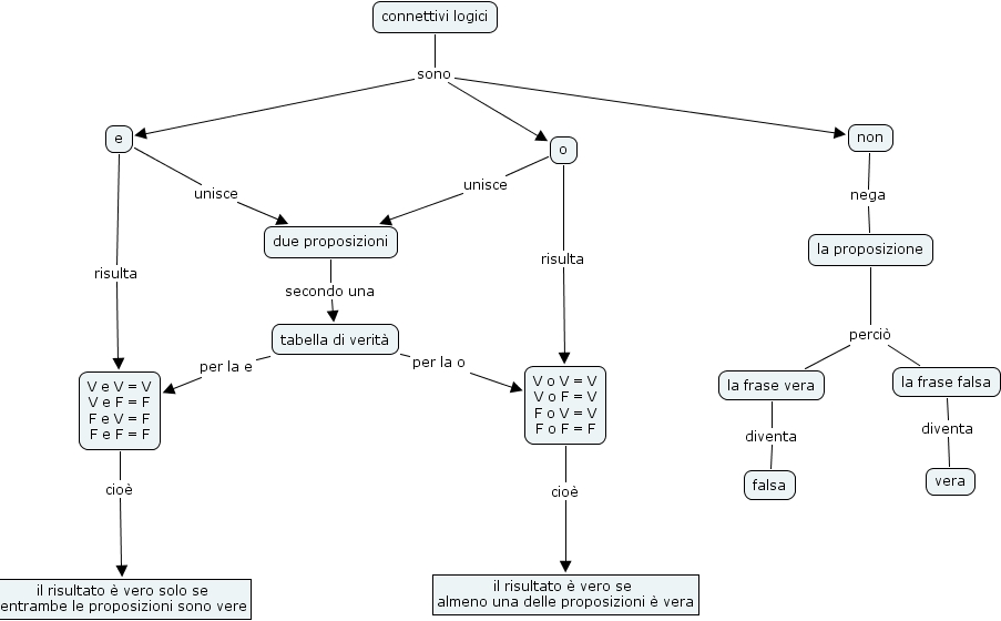 connettivi, v o v = v v o f = v f o v = v f o f = f, v e v = v v e f = f f e v = f f e f = f, vera, non, o, tabella di verit�, il risultato � vero solo se entrambe le proposizioni sono vere, la proposizione, la frase falsa, due proposizioni, la frase vera, falsa, connettivi logici, il risultato � vero se almeno una delle proposizioni � vera, e