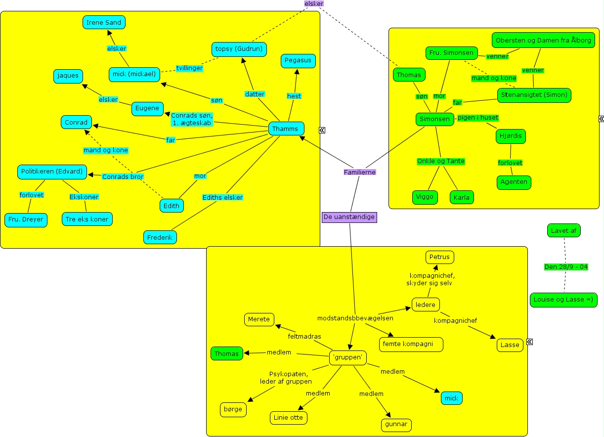 louise lasseln & lv personer, 'gruppen', linie otte, karla, stenansigtet (simon), merete, gunnar, pegasus, mick, edith, fru. dreyer, frederik, jaques, conrad, politikeren (edvard), lasse, thomas, de uanst�ndige, thomas, fru. simonsen, tre eks koner, ????, femte kompagni , obersten og damen fra �lborg, topsy (gudrun), mick (mickael), irene sand, louise og lasse =), b�rge, viggo, thamms , thamms, agenten, hj�rdis, petrus, ????, lavet af, eugene, ledere, simonsen