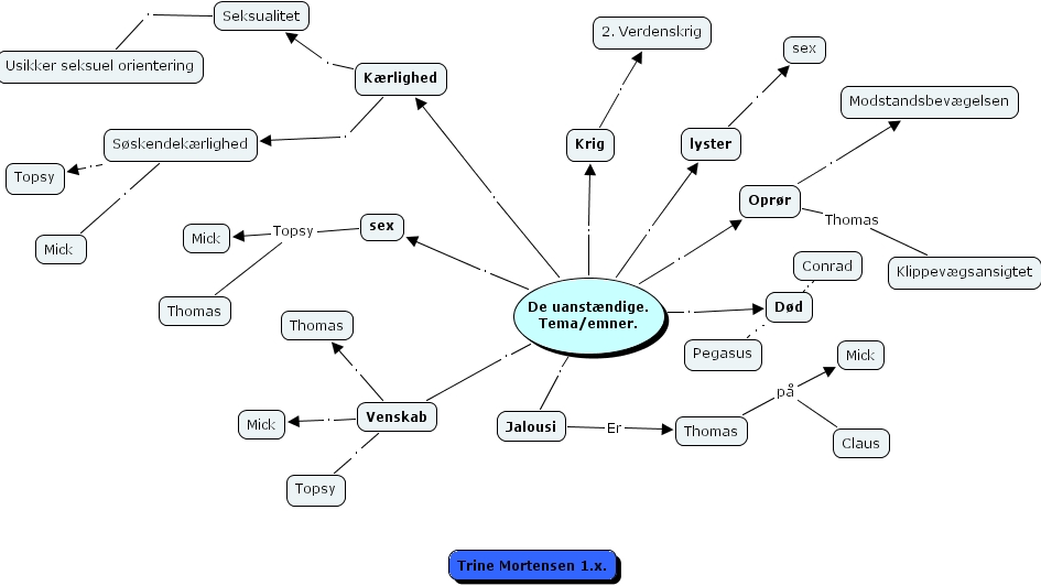 trine tema emner uanst�ndige, k�rlighed, mick, opr�r, venskab, de uanst�ndige. tema emner., claus, seksualitet, mick, usikker seksuel orientering, topsy, jalousi, lyster, sex, d�d, pegasus, mick , topsy, thomas, trine mortensen 1.x., modstandsbev�gelsen, 2. verdenskrig, thomas, krig, conrad, thomas, klippev�gsansigtet, s�skendek�rlighed, sex, mick