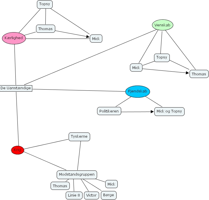 musa jonathan de uanst�ndige tema, k�rlighed, krig, venskab, modstandsgruppen, linie 8, mick og topsy, politikeren, topsy, thomas, fjendskab, mick, victor, topsy, de uanst�ndige, tyskerne, thomas, mick, thomas, b�rge, mick