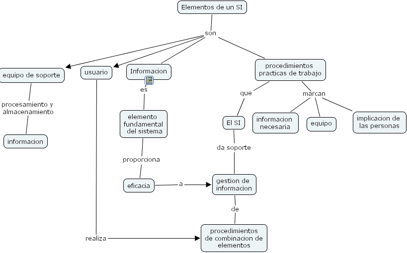 Elementos de un SI son procedimientos practicas de trabajo, Elementos de un SI son usuario, Elementos de un SI son Informacion, Elementos de un SI son equipo de soporte, usuario realiza procedimientos de combinacion de elementos, procedimientos practicas de trabajo marcan equipo, procedimientos practicas de trabajo marcan implicacion de las personas, procedimientos practicas de trabajo marcan informacion necesaria, procedimientos practicas de trabajo que El SI, elemento fundamental del sistema proporciona eficacia, Informacion es elemento fundamental del sistema, equipo de soporte procesamiento y almacenamiento informacion, eficacia a gestion de informacion, gestion de informacion de procedimientos de combinacion de elementos, El SI da soporte gestion de informacion