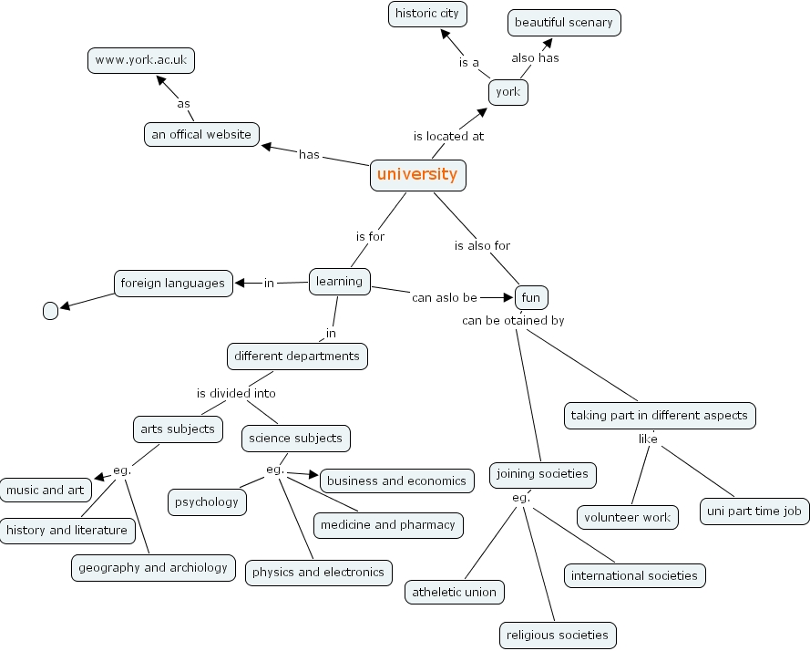learning in foreign languages, university has an offical website, university is located at york, fun can be otained by joining societies, fun can be otained by taking part in different aspects, arts subjects eg. music and art, arts subjects eg. geography and archiology, arts subjects eg. history and literature, joining societies eg. international societies, joining societies eg. atheletic union, joining societies eg. religious societies, different departments is divided into science subjects, different departments is divided into arts subjects, taking part in different aspects like uni part time job, taking part in different aspects like volunteer work, university is for learning, foreign languages ???? , learning can aslo be fun, an offical website as www.york.ac.uk, university is also for fun, york is a historic city, york also has beautiful scenary, learning in different departments, science subjects eg. physics and electronics, science subjects eg. medicine and pharmacy, science subjects eg. psychology, science subjects eg. business and economics