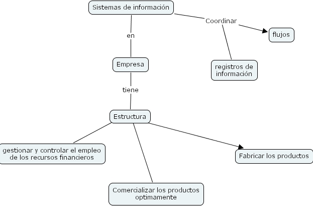 Sistemas de informaci�n en Empresa, Estructura ???? Comercializar los productos optimamente, Estructura ???? Fabricar los productos, Empresa tiene Estructura, Sistemas de informaci�n Coordinar registros de informaci�n, Sistemas de informaci�n Coordinar flujos, Estructura ???? gestionar y controlar el empleo de los recursos financieros