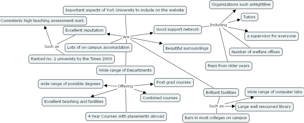 Good support network Including Tutors, Good support network Including Organizations such asNightline, Good support network Including Number of welfare offices, Good support network Including a supervisor for everyone, Good support network Including Reps from older years, Brilliant facilities Such as Bars in most colleges on campus, Brilliant facilities Such as Large well resourced library, Brilliant facilities Such as Wide range of computer labs, Brilliant facilities Such as Large well resourced library, Wide range of Departments Offering Excellent teaching and facilities, Wide range of Departments Offering Combined courses, Wide range of Departments Offering 4 Year Courses with placements abroad, Wide range of Departments Offering wide range of possible degrees, Wide range of Departments Offering Post grad courses, Wide range of Departments Offering Excellent teaching and facilities, Wide range of Departments Offering Combined courses, Wide range of Departments Offering 4 Year Courses with placements abroad, Wide range of Departments Offering wide range of possible degrees, Wide range of Departments Offering Post grad courses, Important aspects of York University to include on the website Are Excellent reputation, Important aspects of York University to include on the website Are Brilliant facilities, Important aspects of York University to include on the website Are Wide range of Departments, Important aspects of York University to include on the website Are Beautiful surroundings, Important aspects of York University to include on the website Are Good support network, Important aspects of York University to include on the website Are Lots of on campus accomadation, Excellent reputation Such as Consistenly high teaching assessment mark, Excellent reputation Such as Ranked no. 1 univeristy by the Times 2003