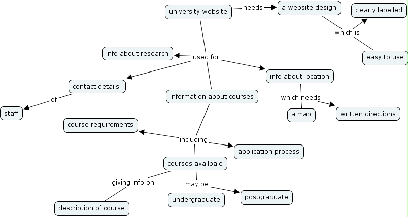 information about courses including courses availbale, information about courses including course requirements, information about courses including application process, university website used for info about location, university website used for info about research, university website used for contact details , university website used for information about courses, university website needs a website design, info about location which needs written directions, info about location which needs a map, a website design which is easy to use, a website design which is clearly labelled, courses availbale giving info on description of course, contact details of staff, courses availbale may be undergraduate, courses availbale may be postgraduate