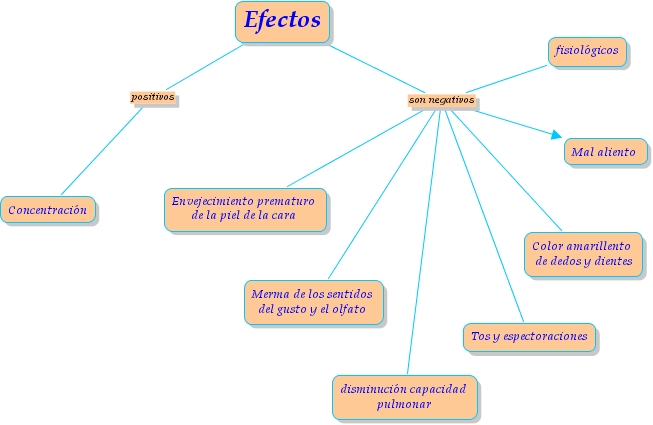 Efectos positivos Concentraci�n, Efectos son negativos Tos y espectoraciones, Efectos son negativos disminuci�n capacidad pulmonar, Efectos son negativos Envejecimiento prematuro de la piel de la cara , Efectos son negativos Color amarillento de dedos y dientes, Efectos son negativos Mal aliento , Efectos son negativos Merma de los sentidos del gusto y el olfato , fisiol�gicos son negativos Tos y espectoraciones, fisiol�gicos son negativos disminuci�n capacidad pulmonar, fisiol�gicos son negativos Envejecimiento prematuro de la piel de la cara , fisiol�gicos son negativos Color amarillento de dedos y dientes, fisiol�gicos son negativos Mal aliento , fisiol�gicos son negativos Merma de los sentidos del gusto y el olfato