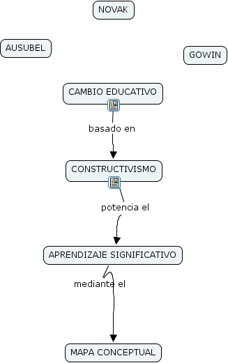 CONSTRUCTIVISMO potencia el APRENDIZAJE SIGNIFICATIVO, CAMBIO EDUCATIVO basado en CONSTRUCTIVISMO, APRENDIZAJE SIGNIFICATIVO mediante el MAPA CONCEPTUAL