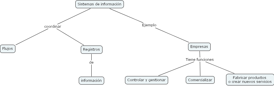 Registros de informaci�n, Sistemas de informaci�n coordinar Flujos, Sistemas de informaci�n coordinar Registros, Empresas Tiene funciones Fabricar productos o crear nuevos servicios, Empresas Tiene funciones Comercializar, Empresas Tiene funciones Controlar y gestionar, Sistemas de informaci�n Ejemplo Empresas