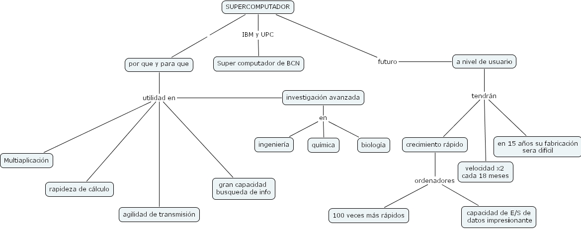 SUPERCOMPUTADOR IBM y UPC Super computador de BCN, investigaci�n avanzada en qu�mica, investigaci�n avanzada en ingenier�a, investigaci�n avanzada en biolog�a, a nivel de usuario tendr�n velocidad x2 cada 18 meses, a nivel de usuario tendr�n en 15 a�os su fabricaci�n sera dif�cil, a nivel de usuario tendr�n crecimiento r�pido, crecimiento r�pido ordenadores 100 veces m�s r�pidos, crecimiento r�pido ordenadores capacidad de E/S de datos impresionante, SUPERCOMPUTADOR futuro a nivel de usuario, por que y para que utilidad en rapideza de c�lculo, por que y para que utilidad en Multiaplicaci�n, por que y para que utilidad en gran capacidad busqueda de info, por que y para que utilidad en investigaci�n avanzada, por que y para que utilidad en agilidad de transmisi�n, SUPERCOMPUTADOR por que y para que