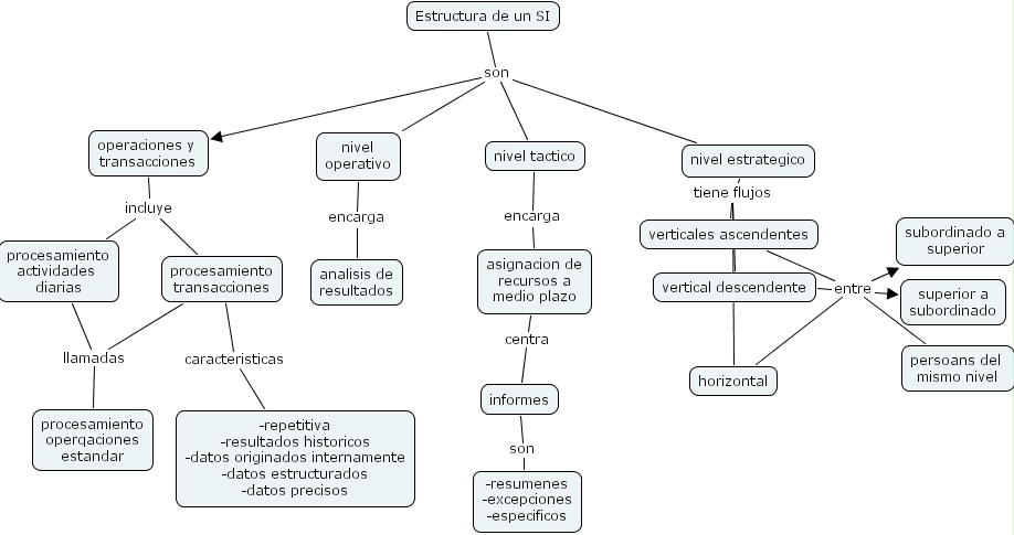 informes son -resumenes -excepciones -especificos, nivel operativo encarga analisis de resultados, operaciones y transacciones incluye procesamiento transacciones, operaciones y transacciones incluye procesamiento actividades diarias, horizontal entre persoans del mismo nivel, horizontal entre superior a subordinado, horizontal entre subordinado a superior, nivel tactico encarga asignacion de recursos a medio plazo, vertical descendente entre persoans del mismo nivel, vertical descendente entre superior a subordinado, vertical descendente entre subordinado a superior, asignacion de recursos a medio plazo centra informes, procesamiento transacciones caracteristicas -repetitiva -resultados historicos -datos originados internamente -datos estructurados -datos precisos, Estructura de un SI son operaciones y transacciones, Estructura de un SI son nivel estrategico, Estructura de un SI son nivel operativo, Estructura de un SI son nivel tactico, verticales ascendentes entre persoans del mismo nivel, verticales ascendentes entre superior a subordinado, verticales ascendentes entre subordinado a superior, procesamiento actividades diarias llamadas procesamiento operqaciones estandar, nivel estrategico tiene flujos verticales ascendentes, nivel estrategico tiene flujos vertical descendente, nivel estrategico tiene flujos horizontal, procesamiento transacciones llamadas procesamiento operqaciones estandar