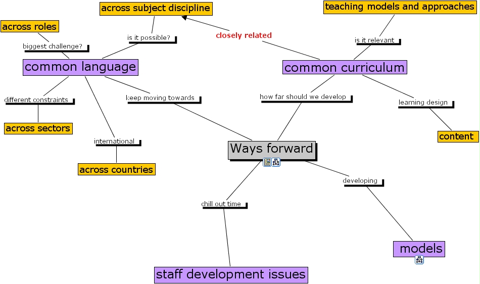 ways forward, common language, models, teaching models and approaches, ways forward, content , common curriculum, across roles, across countries, across subject discipline, across sectors, staff development issues
